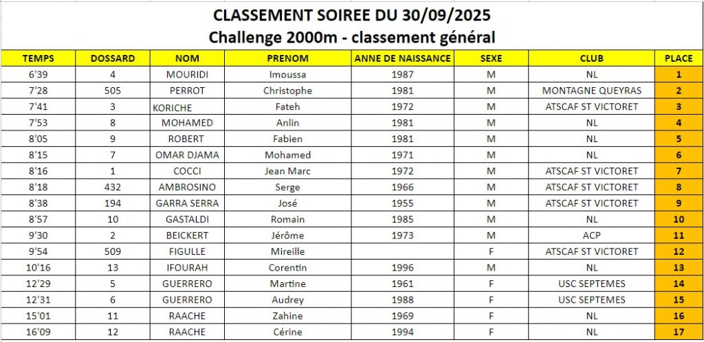 Les challenges de rentrée étaient de retour ce mardi 30 septembre sur le stade Roger Couderc. C’était aussi l’occasion de relancer le Super Challenge FSGT  des soirées pistes pour cette nouvelle saison !
