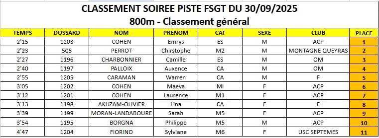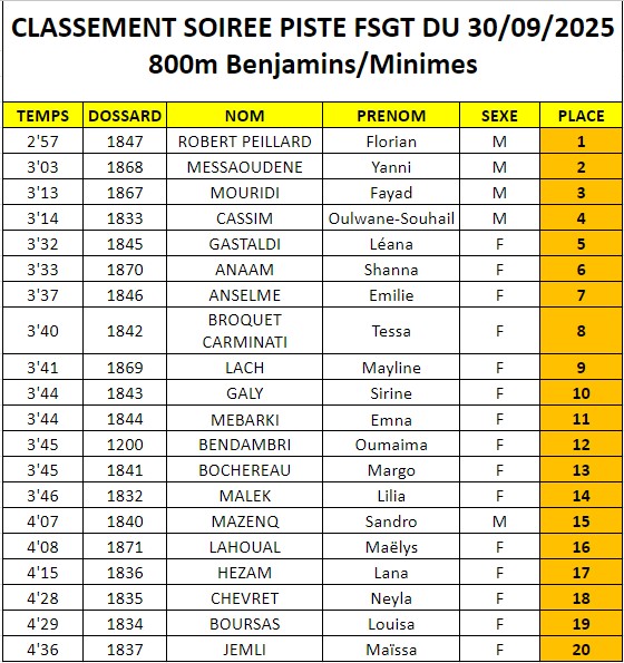 Au programme, 800m, 2000m et 5000m, avec la participation de nos jeunes benjamins.